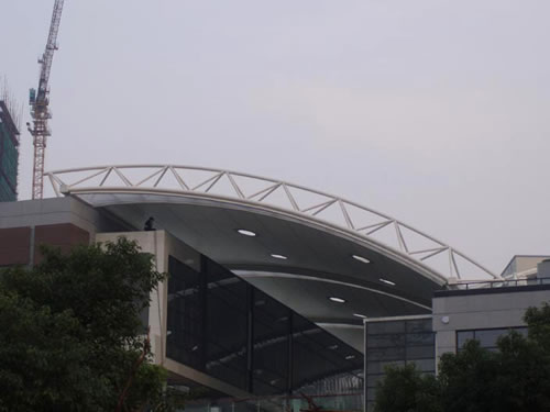 常州萊蒙都會置業(yè)有限公司,南大街商業(yè)街區(qū)A1~A6屋頂鋼結構膜結構工程總投資1千多萬元,本工程的施工均位于原有建筑物的屋頂上,且各屋頂標高不一致。原屋面均已有保溫層和防水層,以及女兒墻、護欄等,改造加固施工難度大,施工總工期短。