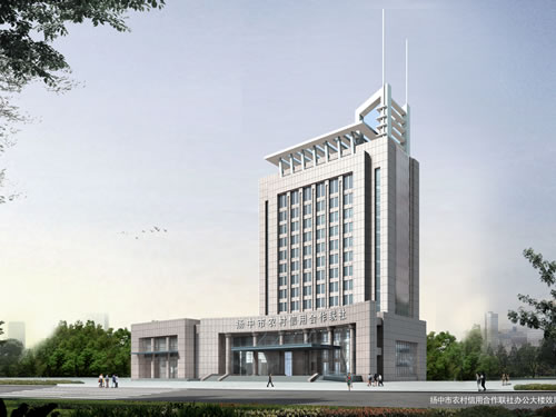 揚中農(nóng)村合作銀行綜合樓及服務樓工程位于揚中西路南側,長江大酒店斜對面.總建筑面積18555平方米,其中地上14791平方米,其中綜合樓13089平方米,服務樓1702平方米,地下建筑面積3764平方米。建筑高度綜合樓為60.6米,服務樓為9.95米,地上十三層,地下一層,建筑類別為一類建筑,建筑使用年限為50年。外墻采用石材干掛施工。地下室設有金庫、車庫,分開管理。主樓功能齊全,大廳有近14米高的共享空間,商業(yè)樓三樓有能容納近300人的大型會議室。