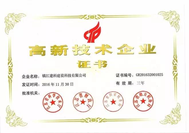 近日,建科集團(tuán)子公司鎮(zhèn)江市建科工程檢測(cè)中心有限公司和鎮(zhèn)江建科建設(shè)科技有限公司獲頒國(guó)家高新技術(shù)企業(yè)證書。