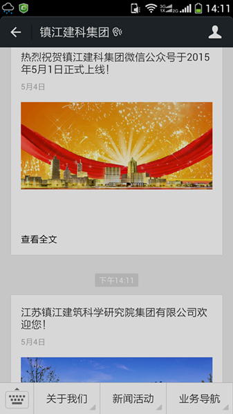 熱烈祝賀鎮(zhèn)江建科集團(tuán)微信公眾號于2015年5月1日正式上線!