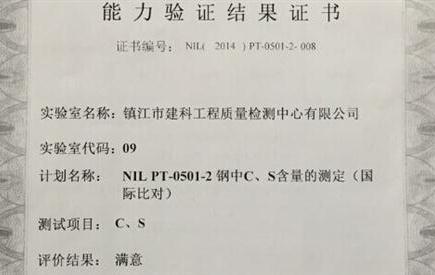 由檢測(cè)三科承擔(dān)的2014年NIL PT-0501-2鋼中C、S含量的測(cè)定(國(guó)際比對(duì))能力驗(yàn)證順利通過(guò),評(píng)價(jià)結(jié)果滿(mǎn)意。通過(guò)參加此次能力驗(yàn)證活動(dòng),大大提高了我中心檢測(cè)人員在該領(lǐng)域的檢測(cè)技術(shù)水平和對(duì)標(biāo)準(zhǔn)規(guī)范的理解認(rèn)知。此次能力驗(yàn)證順利通過(guò)是對(duì)中心在該領(lǐng)域檢測(cè)技術(shù)能力的充分肯定。今后,中心將積極參加此類(lèi)能力認(rèn)證活動(dòng),不斷提高各領(lǐng)域檢測(cè)能力,為社會(huì)提供更優(yōu)質(zhì)的檢測(cè)服務(wù)。 |