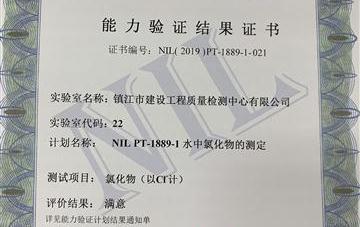 為了提高環(huán)境監(jiān)測項目的能力和水平,確保檢測數(shù)據(jù)的準(zhǔn)確可靠,2019年5月檢測中心參加了由cnas組織實施的“NIL PT-1889-1水中氯化物的測定”能力驗證,評價結(jié)果為“滿意”。