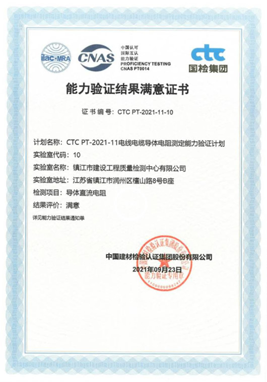 此次能力驗(yàn)證的順利通過,充分體現(xiàn)了我中心質(zhì)量控制體系運(yùn)行有效,在電線電纜檢測(cè)項(xiàng)目中導(dǎo)體直流電阻的檢測(cè)方面具有良好的技術(shù)能力。