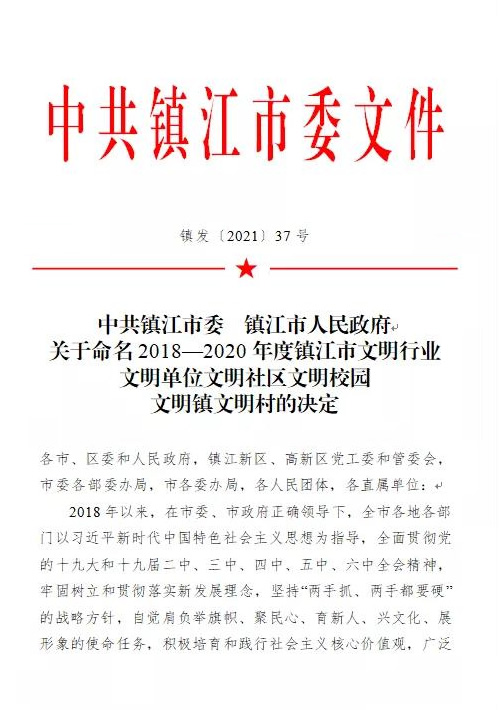 日前,中共鎮(zhèn)江市委、鎮(zhèn)江市人民政府發(fā)布《關(guān)于命名2018—2020年度鎮(zhèn)江市文明行業(yè)、文明單位文明社區(qū)文明校園、文明鎮(zhèn)文明村的決定》,授予603個(gè)單位“鎮(zhèn)江市文明單位”稱號,管理公司榜上有名。