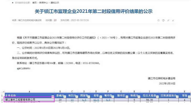 根據(jù)鎮(zhèn)江市住房和城鄉(xiāng)建設(shè)局2021年12月24日發(fā)布的2021[700]號(hào)《關(guān)于開展鎮(zhèn)江市監(jiān)理企業(yè)2021年第二時(shí)段信用分評(píng)價(jià)工作的通知》,我公司按要求及時(shí)上傳了所需評(píng)價(jià)各類文件。本次考核評(píng)價(jià)主要包含企業(yè)基本信用分、納稅得分、在建項(xiàng)目綜合考核分和日常考核分四個(gè)部分。本次共有46家監(jiān)理企業(yè)參與考核評(píng)價(jià),比第一時(shí)段增加了5家參評(píng)單位。最終我公司得分102.35分,繼續(xù)排在全市第一。我公司將以此次信用評(píng)價(jià)為動(dòng)力,保持平常心態(tài),不驕不躁,繼續(xù)深入掌握考核細(xì)則解讀,并以此促進(jìn)我公司監(jiān)理各項(xiàng)工作進(jìn)步落實(shí)。