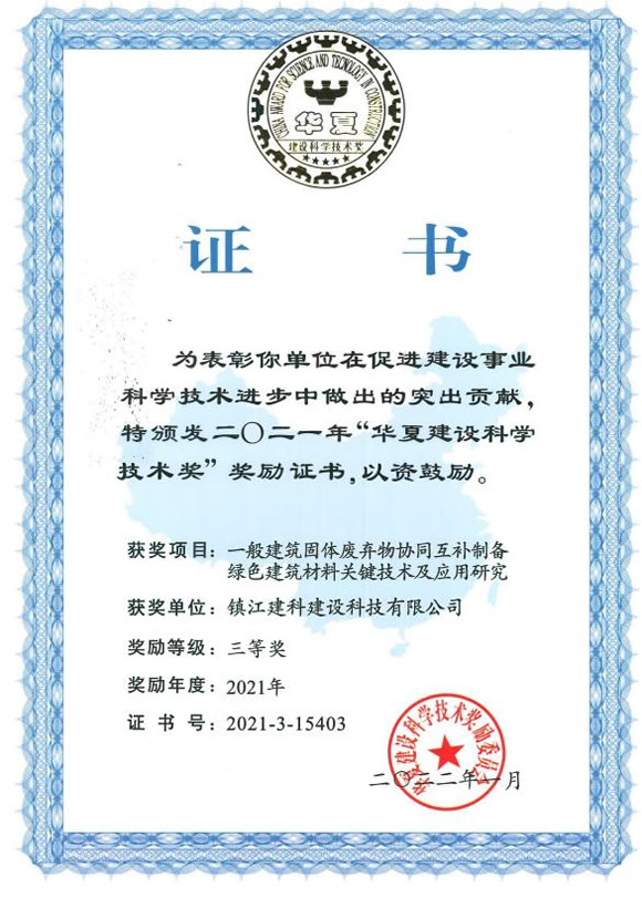 日前,華夏建設(shè)科學(xué)技術(shù)獎(jiǎng)勵(lì)委員會(huì)下發(fā)華夏獎(jiǎng)字〔2022〕2號(hào)文件《關(guān)于發(fā)布2021年度華夏建設(shè)科學(xué)技術(shù)獎(jiǎng)授獎(jiǎng)項(xiàng)目的公告》,集團(tuán)科技公司科技成果《一般建筑固體廢棄物協(xié)同互補(bǔ)制備綠色建筑材料關(guān)鍵技術(shù)及應(yīng)用研究》獲華夏建設(shè)科學(xué)技術(shù)獎(jiǎng)三等獎(jiǎng)。