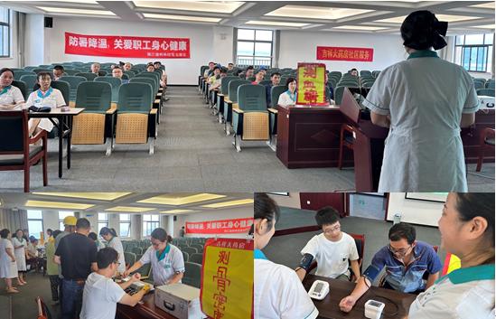 近日持續(xù)高溫,生產(chǎn)一線員工揮汗如雨,為了員工身心健康,2023年8月8日,建科科技黨支部開展“防暑降溫,關(guān)愛職工身心健康”為主題的黨日活動。此次活動邀請鎮(zhèn)江吉祥大藥房工作人員現(xiàn)場為職工講解防暑降溫的注意事項,并針對公司生產(chǎn)場所和特殊工種詳細講解防暑降溫的具體措施,以及應(yīng)急救援的方式方法;顒又校幏抗ぷ魅藛T免費為職工測量血壓、血糖、骨質(zhì)密度以及幽門螺旋桿菌等項目。