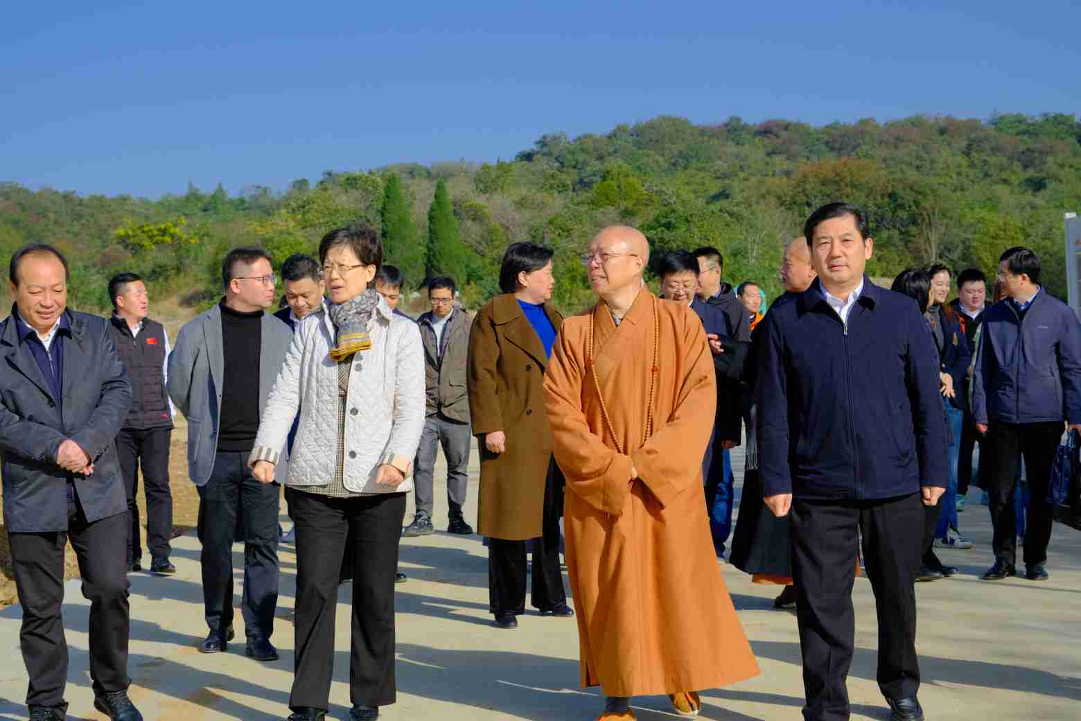 2023年11月17日上午,省委統(tǒng)戰(zhàn)部副部長(zhǎng)、省民宗委主任馬連美一行蒞臨江蘇佛學(xué)院(本部)建設(shè)項(xiàng)目指導(dǎo),鎮(zhèn)江市政府副秘書長(zhǎng)李軍,鎮(zhèn)江市委統(tǒng)戰(zhàn)部常務(wù)副部長(zhǎng)張宜英,中國(guó)佛教協(xié)會(huì)副會(huì)長(zhǎng)、省佛教協(xié)名譽(yù)會(huì)長(zhǎng)、鎮(zhèn)江市佛教協(xié)會(huì)長(zhǎng)、江蘇佛學(xué)院院長(zhǎng)心澄大和尚,鎮(zhèn)江市民宗局副局長(zhǎng)、一級(jí)調(diào)研員王明法陪同調(diào)研,鎮(zhèn)江建科工程管理有限公司作為工程監(jiān)理單位參加了本次調(diào)研。