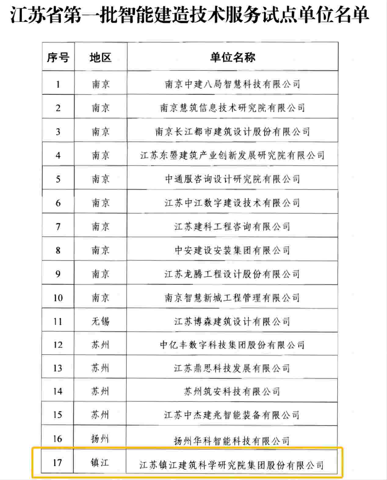 在江蘇省住房和城鄉(xiāng)建設廳近日公布的江蘇省第一批智能建造技術服務試點單位名單中,江蘇鎮(zhèn)江建筑科學研究院集團股份有限公司榮登榜單,成為鎮(zhèn)江地區(qū)范圍內唯一獲此殊榮的單位。